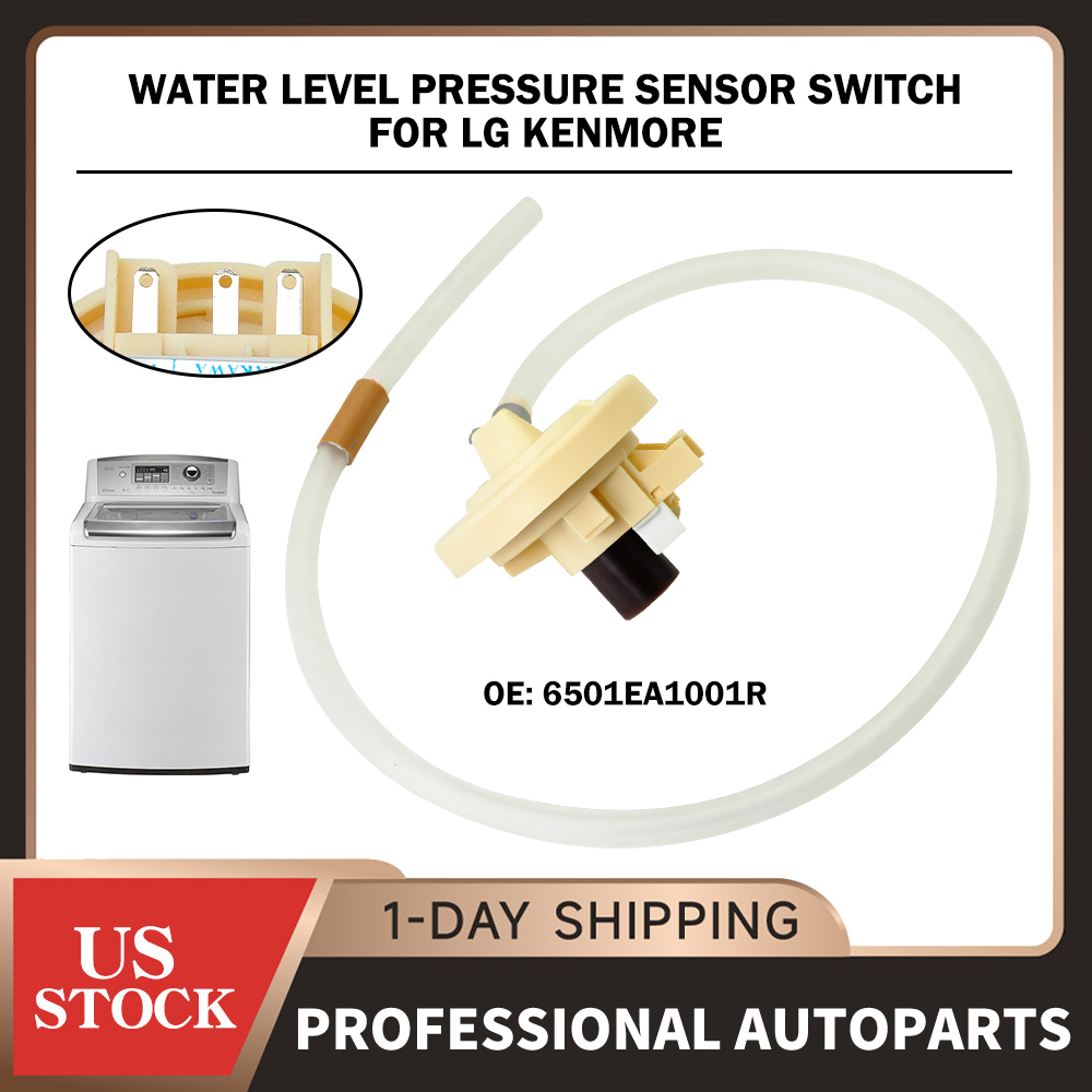 6501EA1001R Washer Water Level Pressure Switch, Direct replacement for LG washer models requiring 6501EA1001R, 6501EA1001C, or AP5204365 pressure switches. Restores proper water level control and resolves common errors like UE (Overflow) or no water filling.