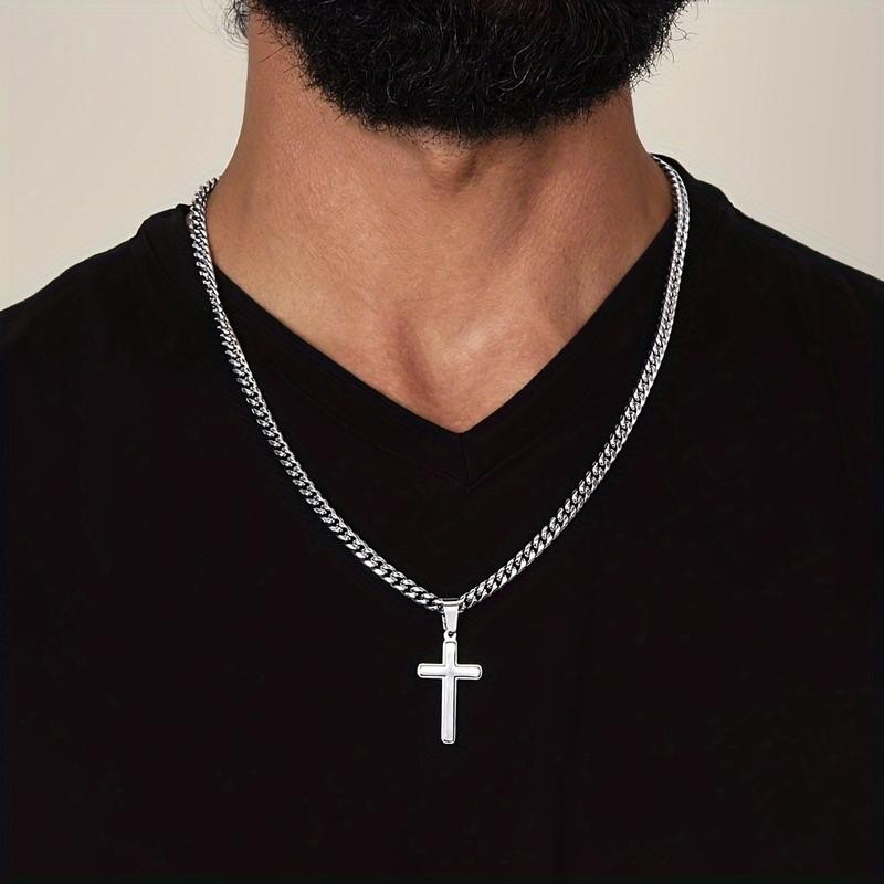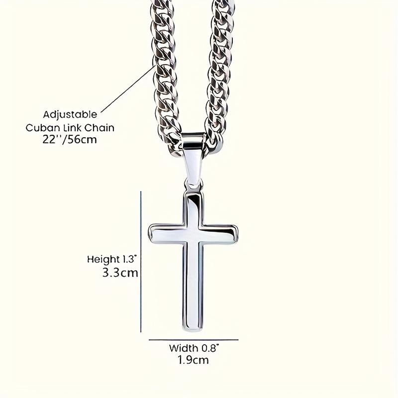 "For My Man" Cross Necklace, Stainless Steel Cuban Chain Jewelry, Birthday Gift, Valentine's Day