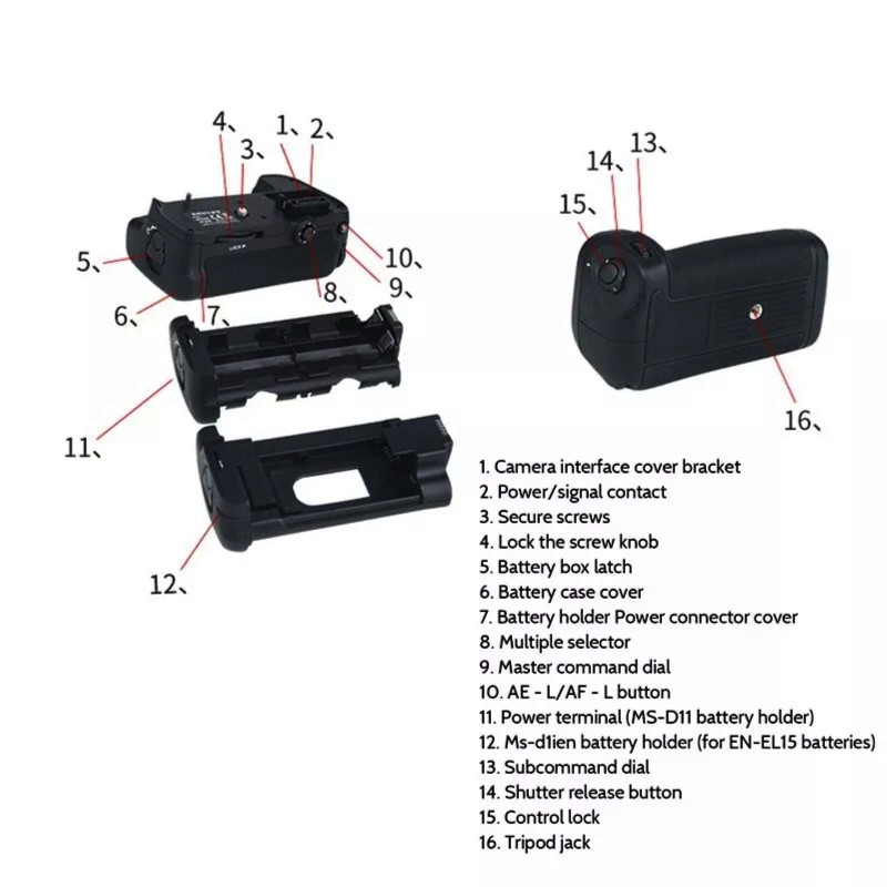 Applicable Battery: For 1pcs EN-EL15 battery or 6pcs AA batteries (Batteries are not included)