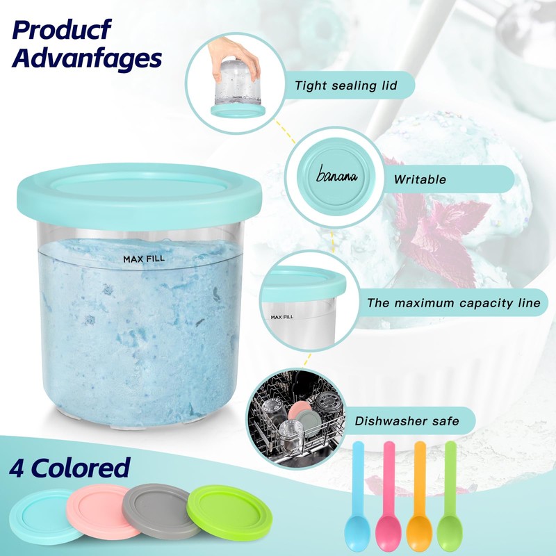 For Ninja CREAMi Pints 4 Pack, Compatible with NC299AMZ & NC300s NC301C Series Creami Ice Cream Makers,Ice Cream Scoop Included(Not suitable for Deluxe NC501)