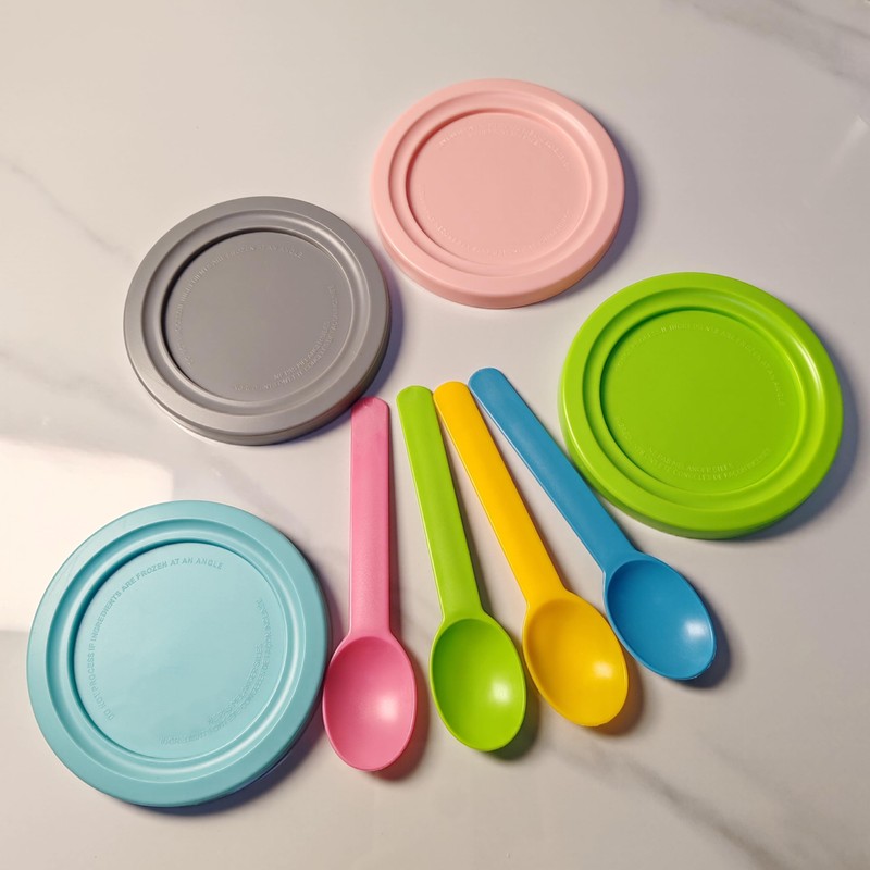 - 🍧4 Colored Lids for Easy Identification: Each pint cup comes with a unique color-coded lid. This feature aids in effortlessly identifying different ice cream flavors, particularly useful when sharing the freezer with multiple users.