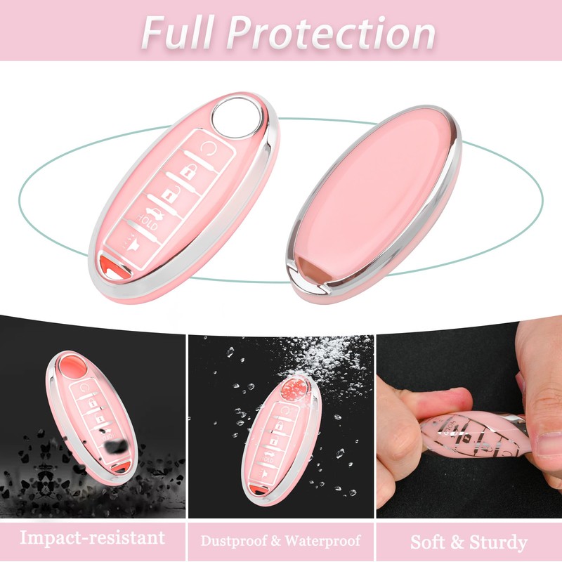 for Nissan Key Fob Cover - 4/5 Button Soft TPU Protection Car Key Case Shell for Altima Maxima Rogue Armada Sentra 370z Pathfinder Murano Remote Smart Key