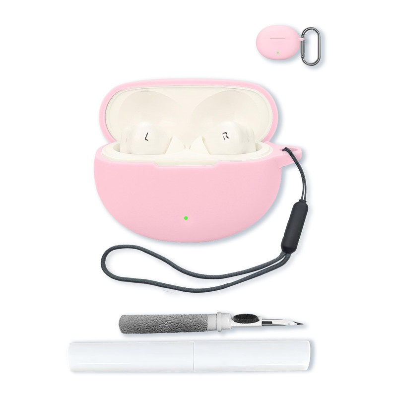 for OnePlus Buds pro 3 and OnePlus Nord Buds 3 Pro(2024) Soft Silicone Protective Case Cover with Keychain,Cleaning Kit and Lanyard-Pink