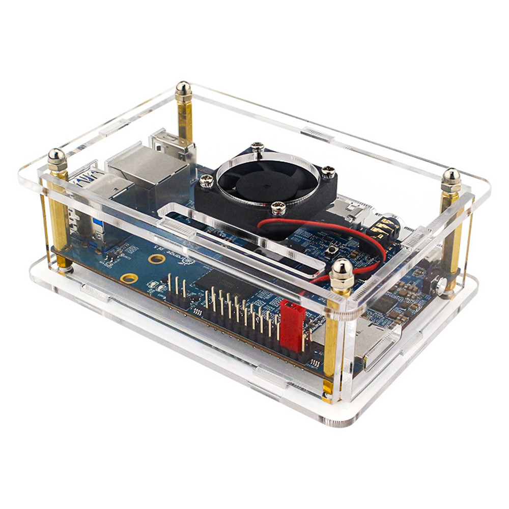 For Orange Pi Acrylic Enclosure Clear Box Protective Shell Cover + Cooling Fan for Orange Pi 5