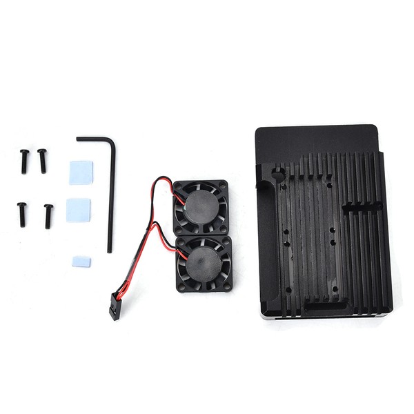 1、High quality CNC aluminum alloy material, through oxidization and sandblasting process, more conductive to heat dissipation. 2、Built-in heat conduction post for more effective transfer of the heat produced by the CPU. 3、Dual cooling fans (optional) further enhances heat dissipation effect of aluminum shell. 4、Open structure design makes sure no influence on the transmission of WIFI signals. 5、All interfaces and slots in the aluminum box are perfectly fit for Raspberry Pi 4B.