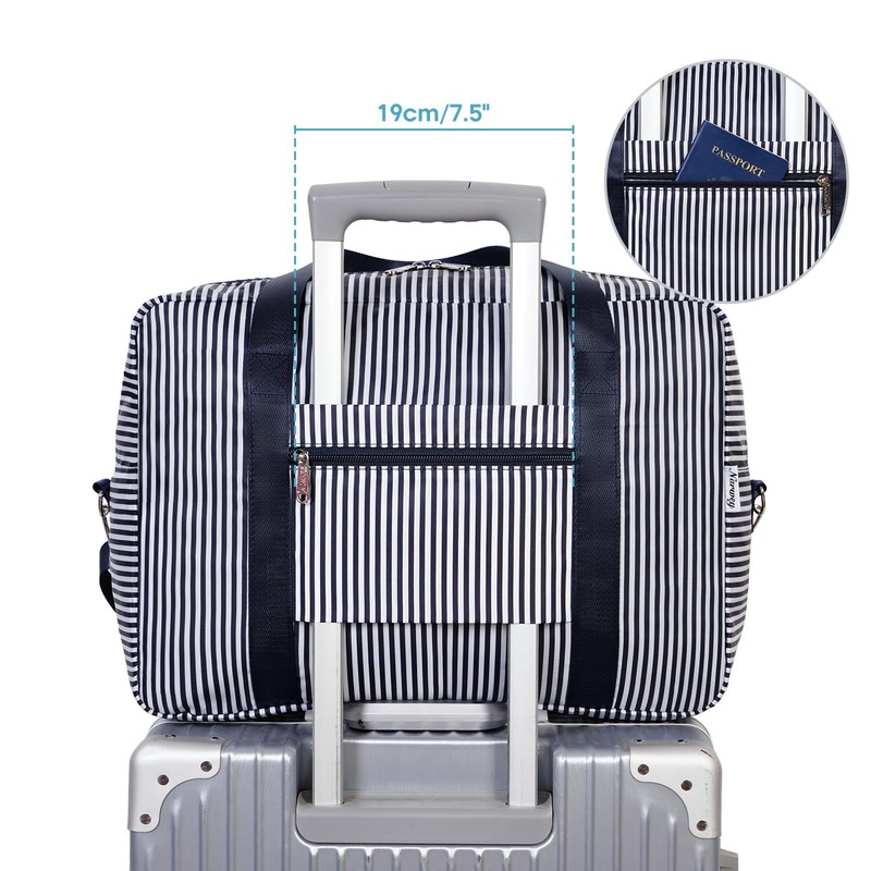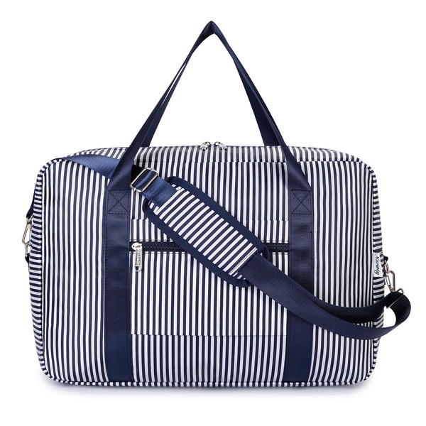 For Spirit Airlines Personal Item Bag 18x14x8 Foldable Travel Duffel Bag Underseat Carry on Luggage for Women and Men 25L (Blue Stripe)