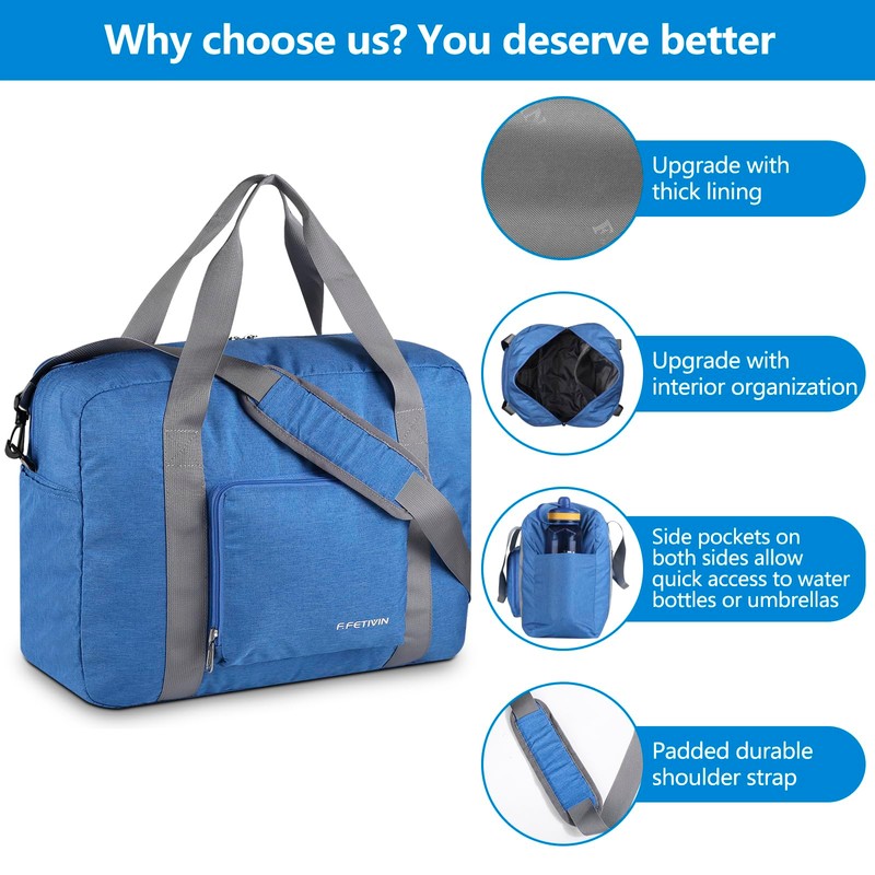 For Spirit Airlines Personal Item Bag 18x14x8 Foldable Travel Duffel Bag Underseat Carry-on Luggage for Women and men 30L(Blue)