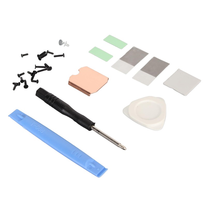- INCLUDED: Includes 1 x 0.5mm / 0.02in Copper Heatsink, 2 x 0.13mm / 0.01in Phase Change Thermal Pads, 3 x 0.5mm / 0.02in Silicone Thermal Pads, 1 x Screwdriver, 1 x Split Pry Bar, 1 x Triangular Pry Tool, 18 x Screws.