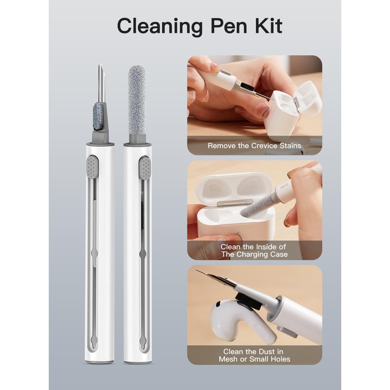 【3 in 1 Cleaning Pen】:The cleaning pen with metal pen tip, soft brush and the high-density flocking brush can help you remove dust and dirt from your Bluetooth headphones, always keeping them as new.
