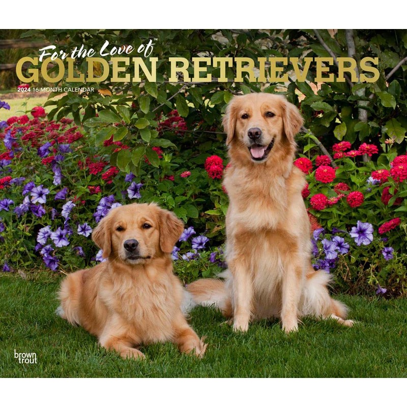 For the Love of Golden Retrievers | 2024 14 x 24 Inch Monthly Deluxe Wall Calendar | Foil Stamped Cover | BrownTrout | Animal Dog Breeds