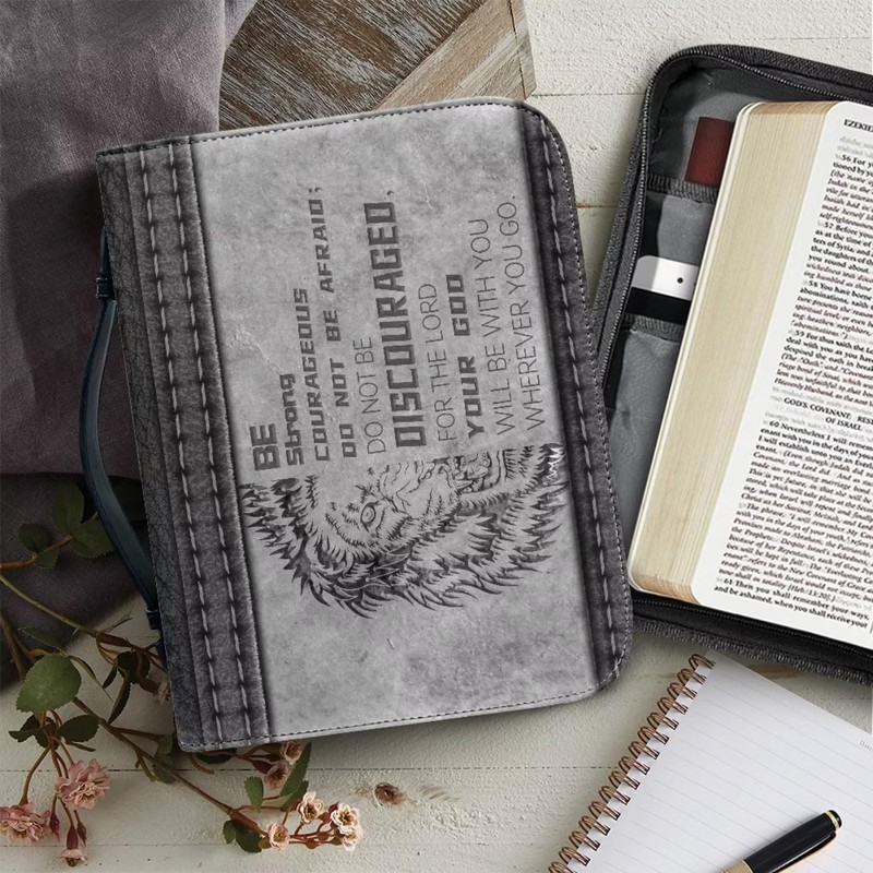FOR U DESIGNS Men Women's Fashion Bible Cover Inspirational Bible Carrying Case Leather Size 2XL, Be Strong and Courageous
