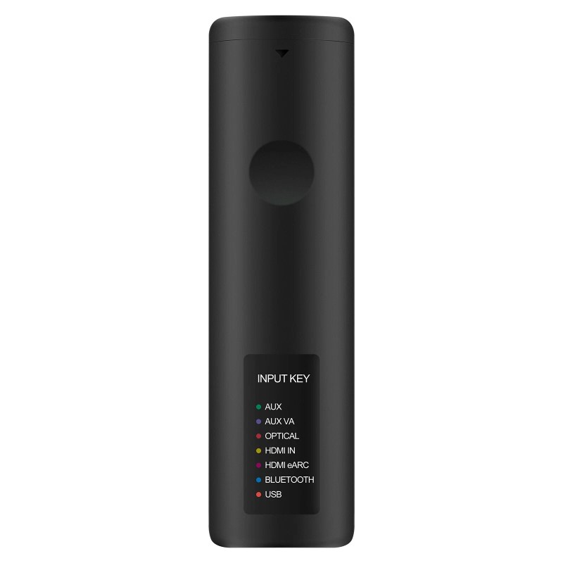 INPUT KEY: AUX, AUX VA, OPTICAL, HDMI IN, HDMI eARC, BLUETOOTH, USB.
