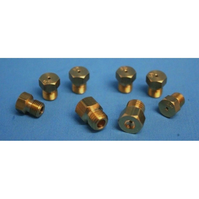 Flamesources dot com conversion kit. Factory instructions are included. These orifices are bored for use with an North American Weber grille using a common and inexpensive regulator that you can purchase at Home Depot, Lowes or Ace with a propane tank mounted underneath the grille. Please contact seller if your grille or installation is different These brass orifices are a replacement for grilles that use male threaded orifices. Many bar-b-ques use these types of orifices and they might retrofit a number of other brands. This set includes 8 orifices for a grille with up to 4 main burners, a sear station, a smoker unit, and the other two (larger) orifices are usually used for the standard side mounted stove style burner and the rotisserie burner. It is usually necessary to swap the regulator as part of the conversion. Other manual adjustments might be necessary, so check your factory instruction manual details. FOB Origin. The Weber Summit S-470 is the stainless steel version of this grille, the enamel version, the Weber Summit E-470, looks like this: