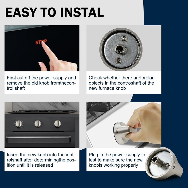 • Installation steps: 1. Make sure the gas cooktop has cooled down and disconnect the gas supply; 2. Gently pull out the old knob vertically upwards (some models need to press the snap); 3. Insert the new knob into the center of the shaft, the installation is complete when you hear the “click” sound.