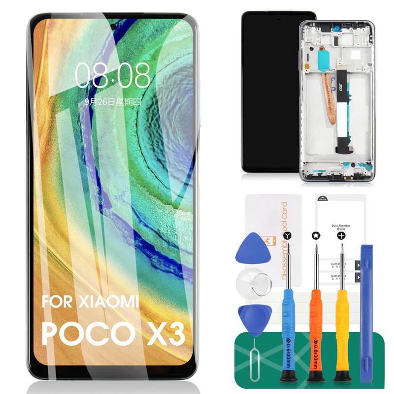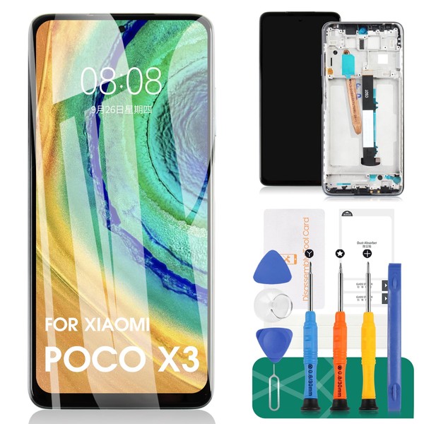 for Xiaomi Poco X3 LCD Screen Replacement for Xiaomi Poco X3 NFC Screen Replacement for Xiaomi Poco X3 Pro Touch Screen Digitizer Assembly Replacement with Frame