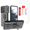 for XiaoMi RedMi Note 14 5G Case with 2 Tempered Glass Screen Protectors, Military-Grade Protective Armor, Lens Protector, Magnetic Kickstand Black