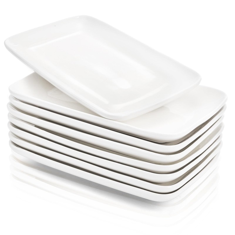 - Perfect Size for Various Food: Value set of 8 serving platters, each measures 8” L x 5” W x 1” H, perfect size for serving a variety of food such as Sushi, snacks, appetizers, desserts, fruits, raw veggies, cupcakes, cookies and other other pastries
