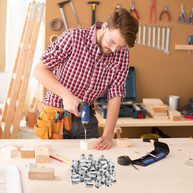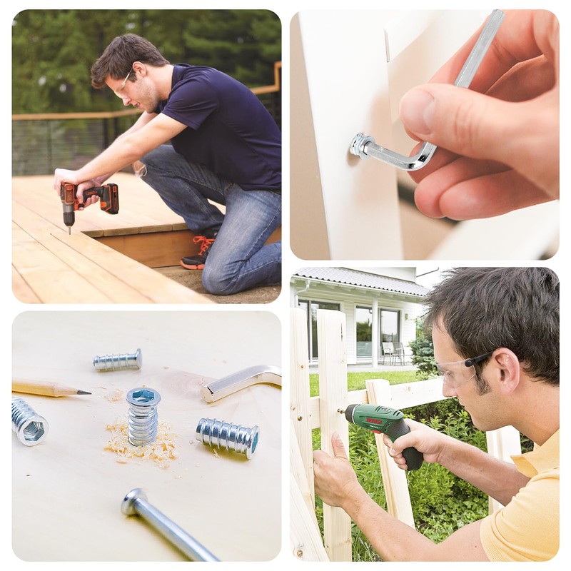 • Easy to use: First drill a hole of the correct size (the depth is 1-2 mm longer than the furniture screw) and then use the included hex key or other optional drive tool to assemble the nut (if the wood hardness is high, please enlarge the screw hole).
