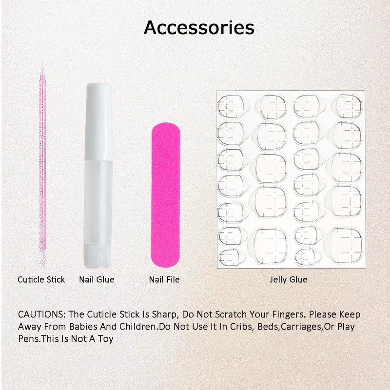 - Product Features:Suitable for ages 6 and up (Keep away from young children to prevent accident),Self-adhesive, high viscosity, invisible finish, easy to apply & remove, clean.Durable and break-resistant, with a soft base for extra comfort on the nail bed.Use jelly adhesive tabs for short-term wear (around 1 week),for longer-lasting wear (2+ weeks),nail glue or cure with a UV lamp to keep the nails firm.Doing tasks such as housework, typing, and gardening while keeping your nails durable!