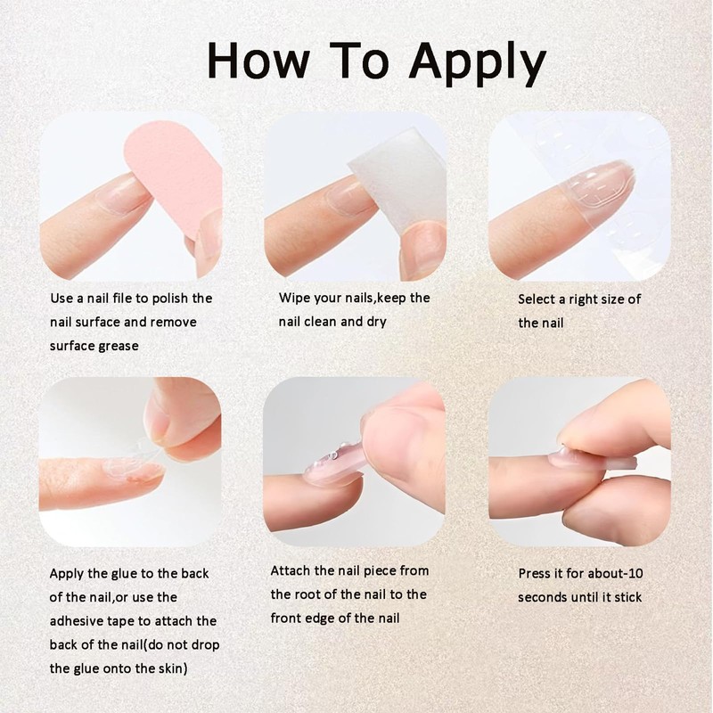 - Product Features:Suitable for ages 6 and up (Keep away from young children to prevent accident),Self-adhesive, high viscosity, invisible finish, easy to apply & remove, clean.Durable and break-resistant, with a soft base for extra comfort on the nail bed.Use jelly adhesive tabs for short-term wear (around 1 week),for longer-lasting wear (2+ weeks),nail glue or cure with a UV lamp to keep the nails firm.Doing tasks such as housework, typing, and gardening while keeping your nails durable!