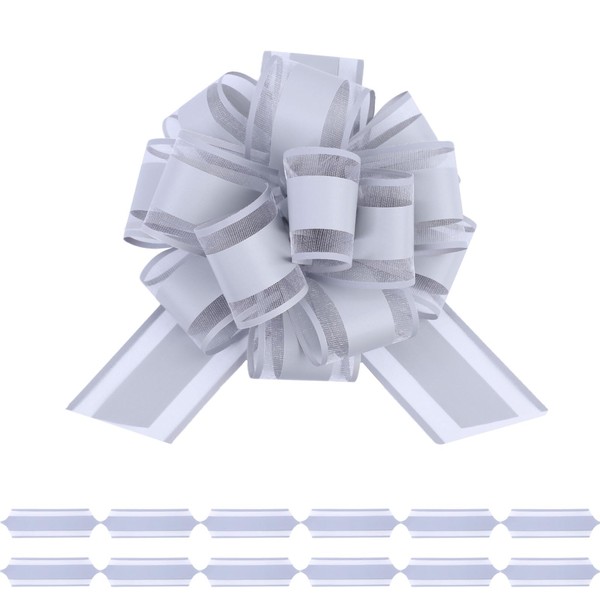 FORBINBO 6Pcs 6inch Pull Bow Gift Wrapping,Pull Bow For Gift Basket, Gift Bag Box Wrapping Decor, Valentines Day, Birthday, Anniversary, Wedding, Flower Packaging (Gray)