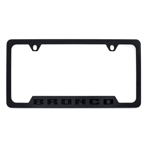 Ford Bronco Metal License Plate Frame Tag Holder - Black with Black