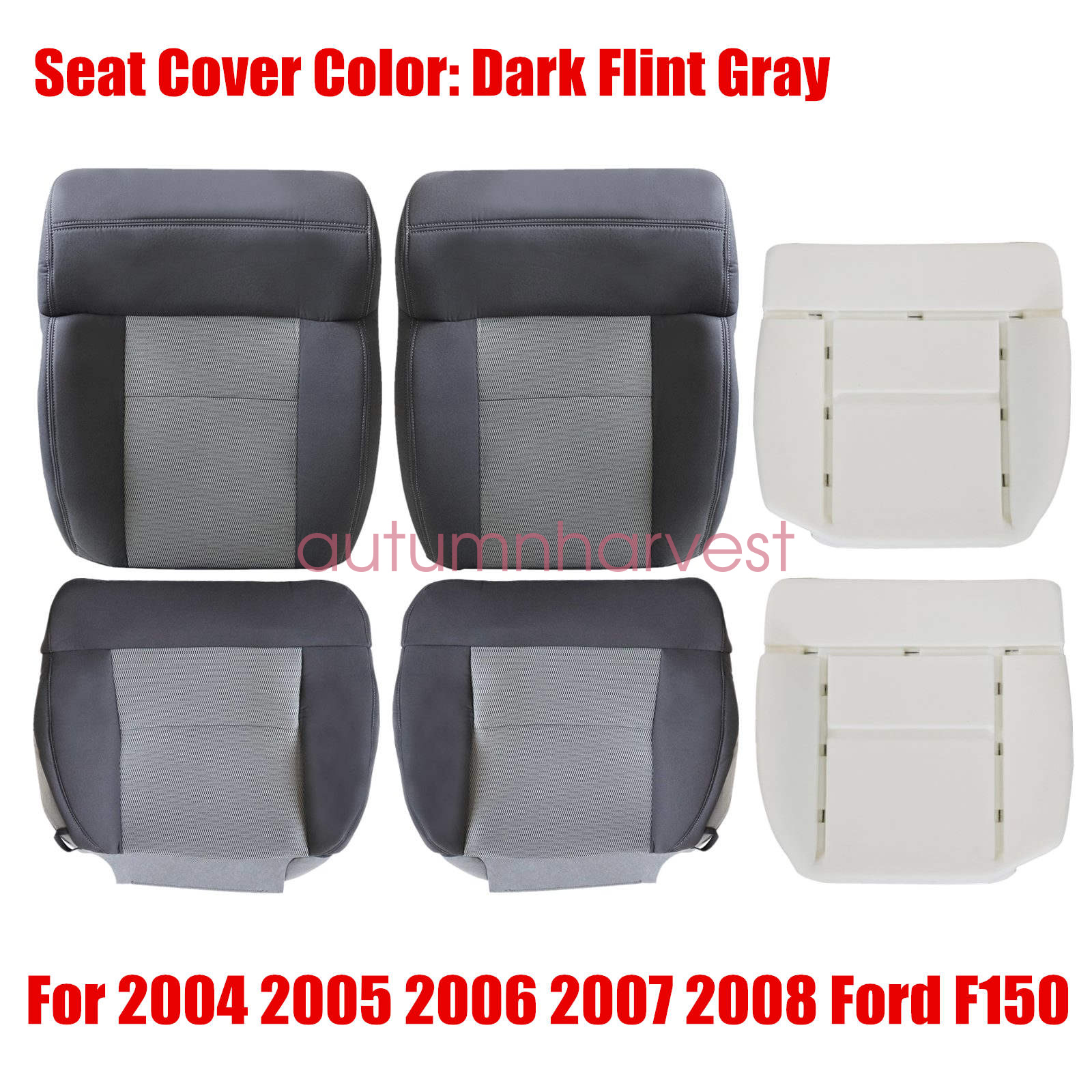 For 2004-2008 Ford F150 Front Both Side Cloth Seat Cover & Bottom Foam Cushion Dark Flint Gray