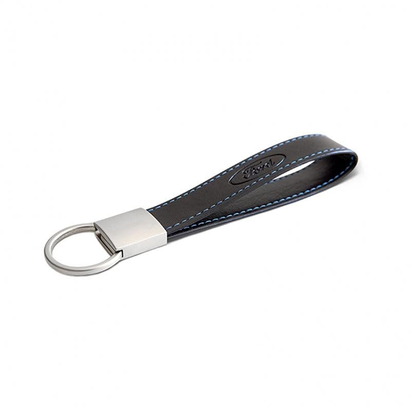 - SMALL ACCESSORY WITH BIG MESSAGE The Ford keyring has a classic Ford logo embossing and matching blue contrast stitching.