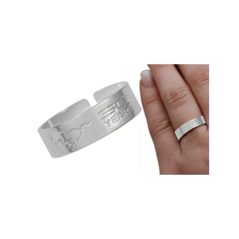 Ford Mustang 50th Anniversary Metal Chrome Plated Plated Unisex Ring Size Large