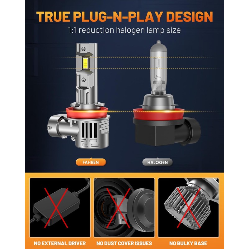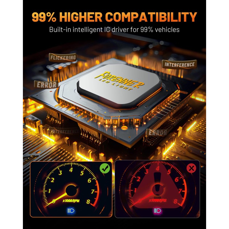 - Fit 99% of VehiclesThe built-in intelligent IC driver makes the H11 H9 H8 bulb better compatible with 99% of vehicles' systems without error. Please note: Although CAN-bus Ready, some sensitive models may require additional decoders to be installed. If so, get in touch with Forenner for assistance.