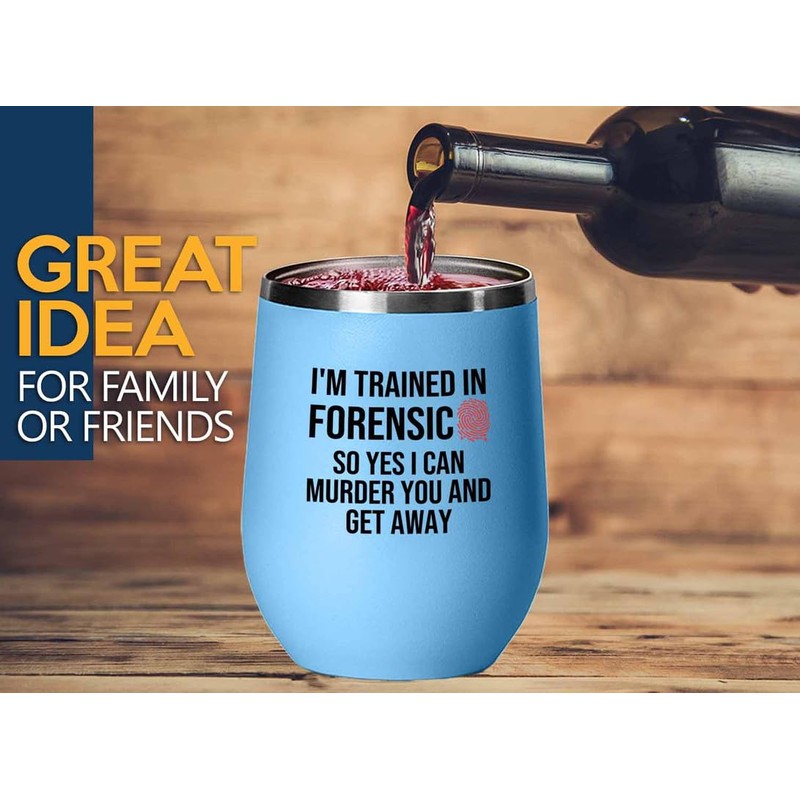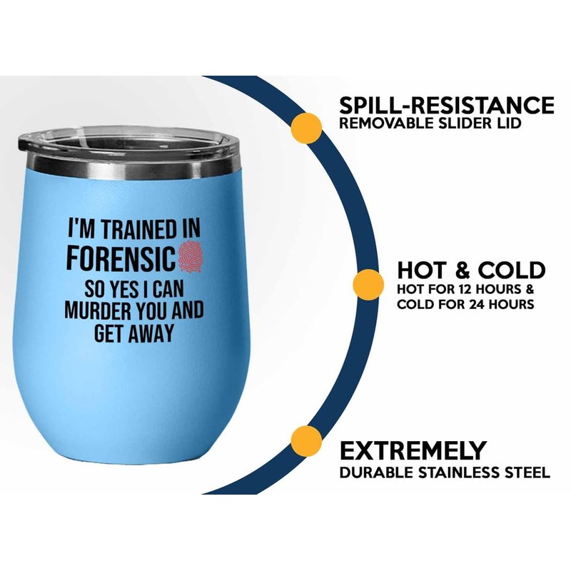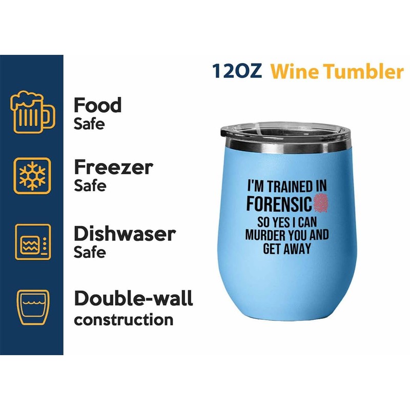 Forensic Blue Edition Wine Tumbler 12oz - Trained In Forensic - Forensics Anthropologist Pathologist DNA Analysts Forensic Scientist Professor Gift