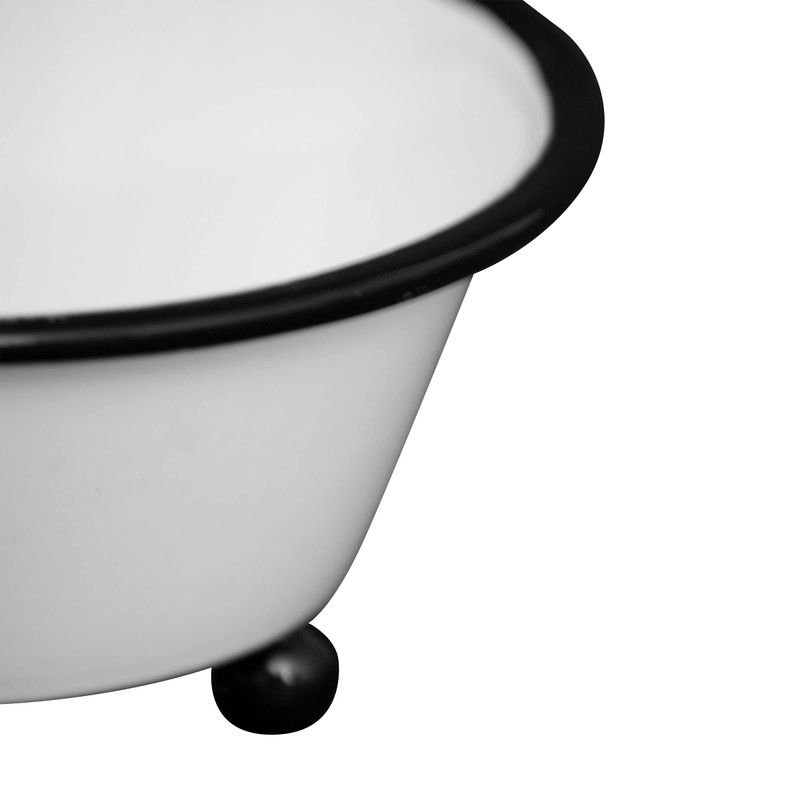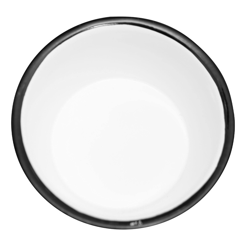 - A crisp and clean white enamel finish, accented with a bold black rim.