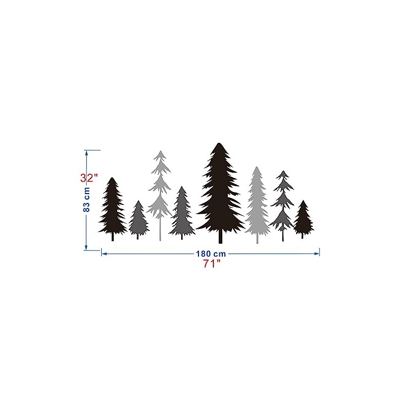 Forest Pine Tree Wall Sticker for Nursery Room Decoration Art Removable Kids Room Tree Wall Decal TM-132 (Black Gray)