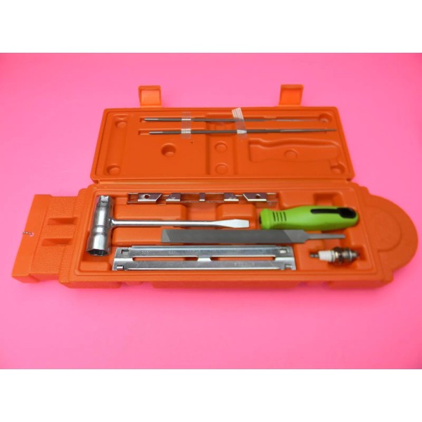 UNIVERSAL FILE HANDLE, FILE GUIDE, FLAT FILE, 2 ROUND FILES, SPARK PLUG, CHAINSAW WRENCH