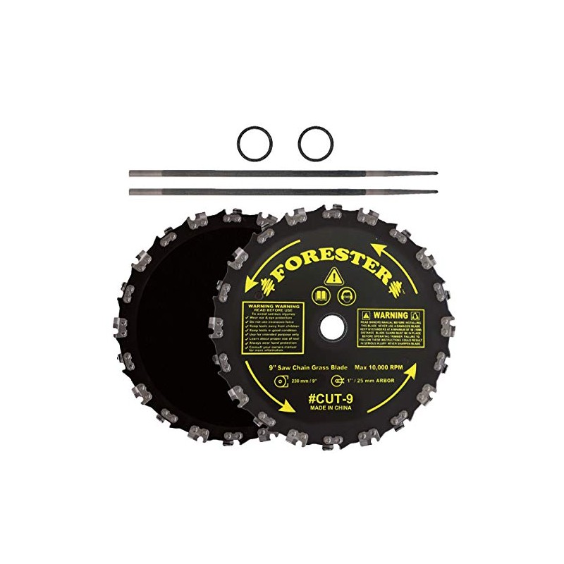 - 2-PACK Bundle Including 2 9" Brush Blades and 2 3/16" (.325" pitch) Round Files Warning: Please keep in mind that all safety gear should be used when ripping through brush like crazy The max speed is 10,000 Rpm's and I would recommend our Heavy Duty Leg Protectors and Eye Protection! Sharpening Files Included and you will be able to sharpen the teeth with a round file for years of use! These blade are very easy to use on a trimmer with a 1" arbor; The blades have 20 Teeth.