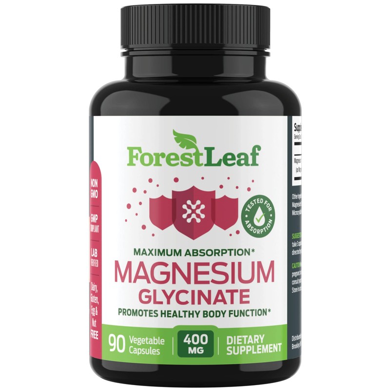 ForestLeaf Pure Magnesium Glycinate 400mg Serving - High Absorption Magnesium Glycinate - Mag Bisglycinate for Stress, Bones, Muscles, Nerves, Relaxation & Heart Healt (90 Count (Pack of 1))