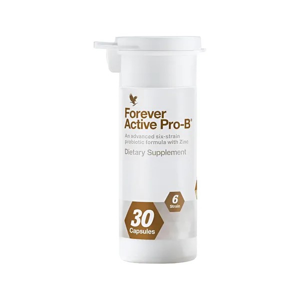Descripción Limpia: Forever Active Pro-B™ es una fórmula balanceada de seis cepas probióticas que promueven la digestión sana, mejoran la absorción de nutrientes y apoyan la función inmune.
