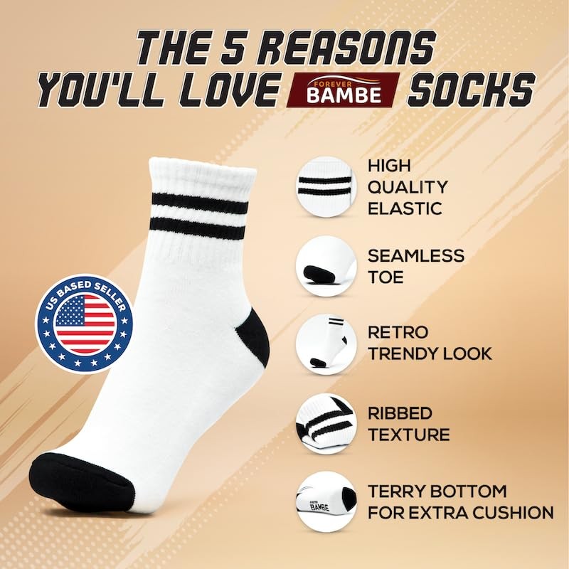 - Plush Terry Bottom: Indulge in cloud-like comfort with a cushy terry bottom that pampers your toes with every step. Combined with super breathable cotton and a seamless toe, Forever Bambe creates comfy striped crew socks women love to wear.