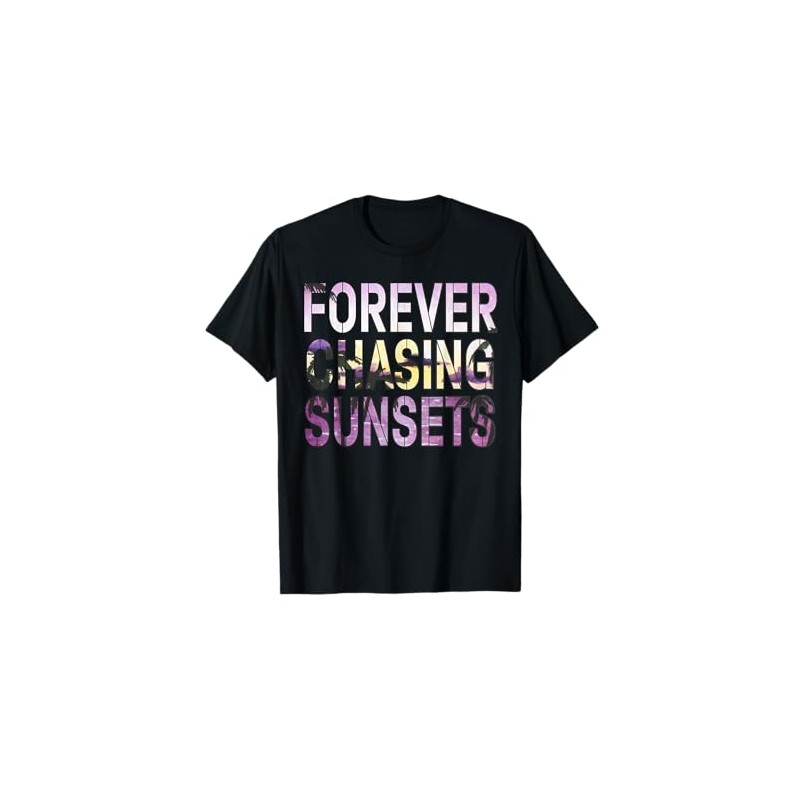 - This funny Forever Chasing Sunsets Summer vacation tee makes a great Gift Idea for any women men or kid on the beach, Spring Break or boat cruise. Grab this retro 70s or 80s sun style Forever Chasing Sunsets beach apparel today.
