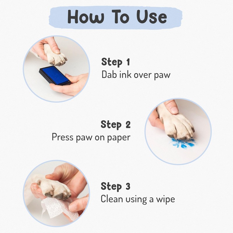 - TWO QUICK STEPS FOR A PERFECT KEEPSAKE – Just dab the paw print pad onto your pet’s paw, and then press their paw onto a clean piece of paper. Easy!