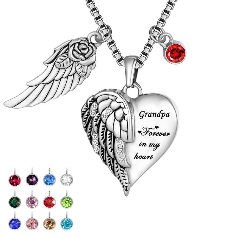 Forever in my heart with 12 Birthstones Cremation Jewelry Keepsake Memorial Urn Necklace, Metal