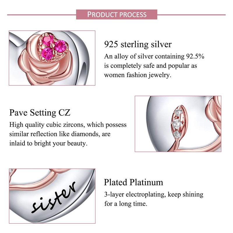 - 🌹Designer's words🌹:✅ This heart shape bead was decorated with a beautiful 3D rose flower and words"sister ", best gift for valentine's day, birthday, Christmas, mother's Day.