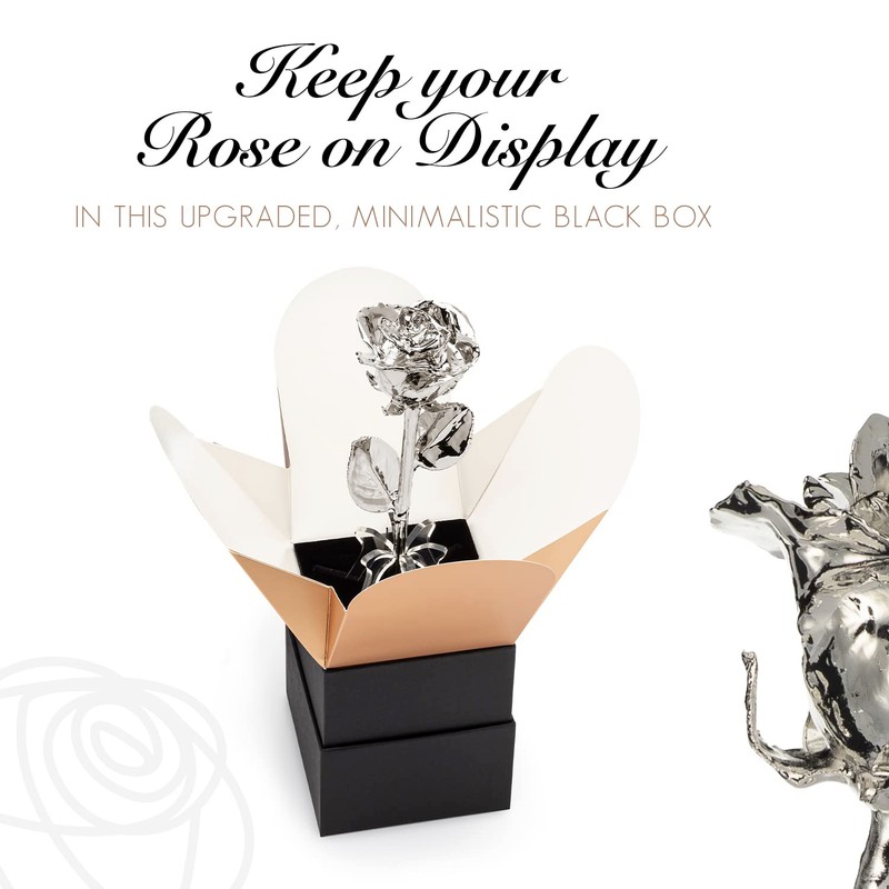 - Upgraded Presentation - Your Forever Rose will be presented in our minimalist, jet black Bloom Box gift box featuring blooming pop up petals and our Forever Rose Phantom Vase to display up to 7 roses. Each gift box includes our Certificate of Authenticity, which describes the process of making the rose, the lifetime warranty, and care instructions.