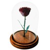 - BEAUTY AND THE BEAST - This enchanted burgundy rose is encased in a crystal clear lacquer shell, allowing its beauty to shine through; The stem and leaves are finished in an aged copper; Each rose measures 8 inches tall and is mounted on solid maple with a removable glass dome