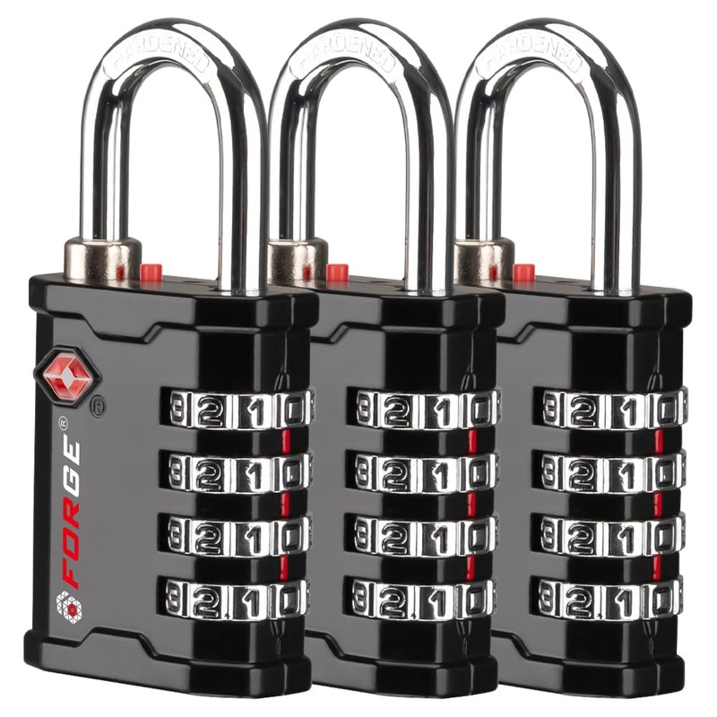 FORGE 4 Digit 17067 TSA Approved Gun Box, Tool Box and Case Lock, Combination Padlock for Travel, Black 3 Locks.