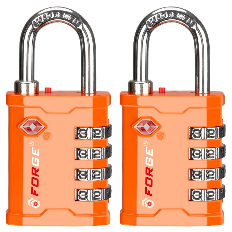 FORGE 4 Digit 17067 TSA Approved Gun Box, Tool Box and Case Lock, Combination Padlock for Travel Orange 2 Locks