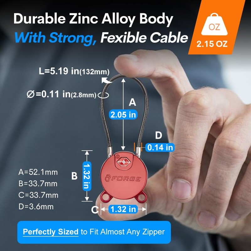 - El bloqueo de llave de cable TSA más seguro del mercado: los cierres de cable de equipaje Forge utilizan una llave avanzada de hoyuelos y sistema de vaso de acero endurecido. La mayoría de las cerraduras de equipaje utilizan llaves de estilo antiguo que son vulnerables a la recogida de cerradura y congelación en el peor momento posible. Descansa tranquilo sabiendo que tu bloqueo Forge es a prueba de manipulaciones y perfectamente fiable.