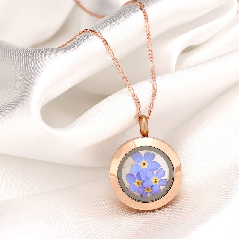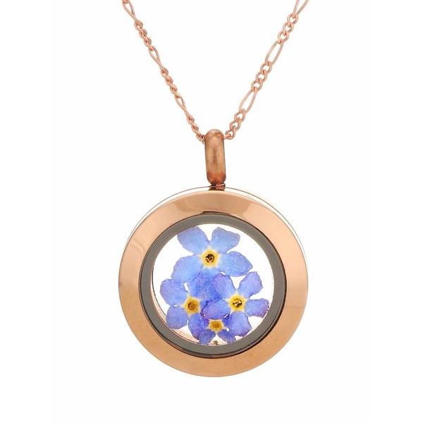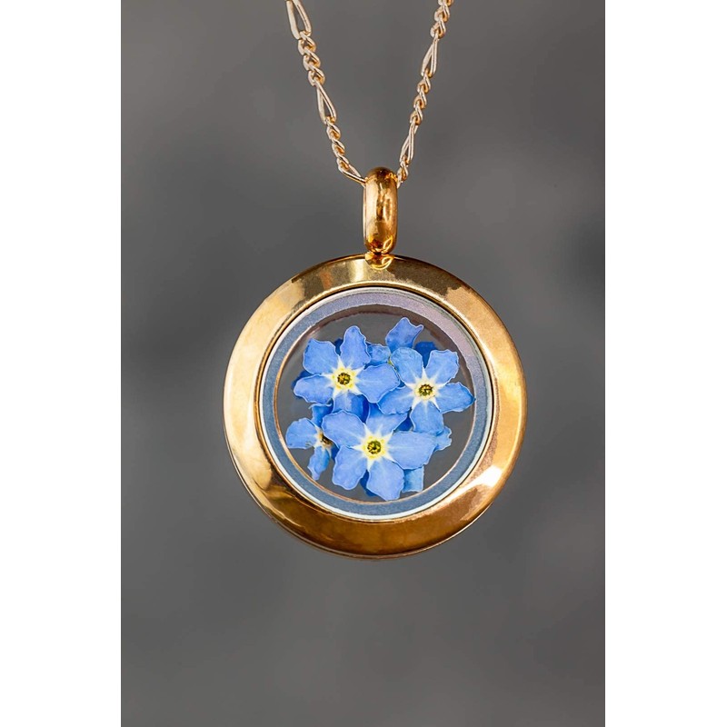 The pendant is filled with real missing me not flowers, which we have collected with love on our walks.