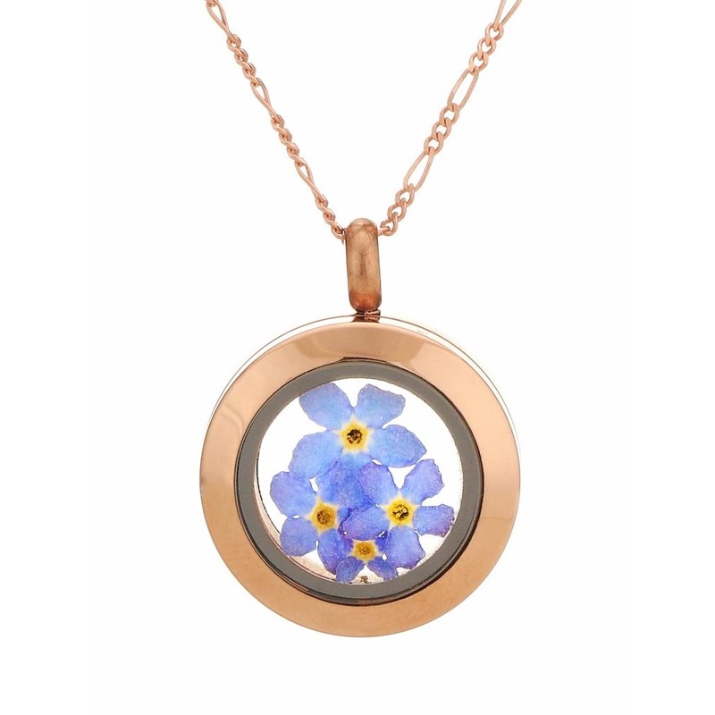 Forget-Me-Not Locket with Chain 50 cm 925 Silver 18 Carat Rose Gold-Plated Gift Set