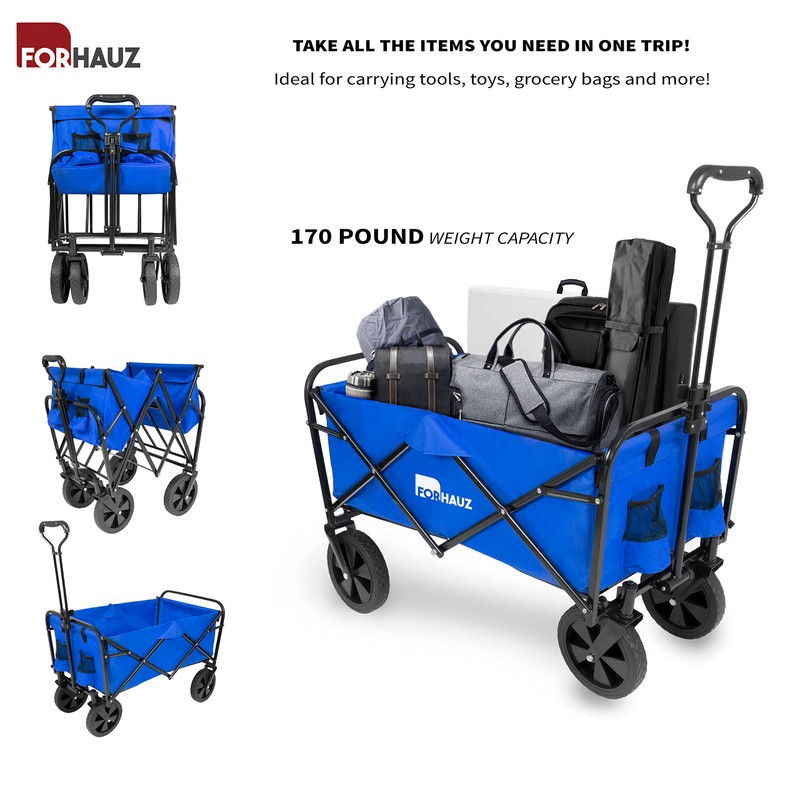 ForHauz Folding Collapsible Heavy Duty Wagon Cart with All-Terrain Wheels for Outdoor Utility, Beach and Garden, Blue